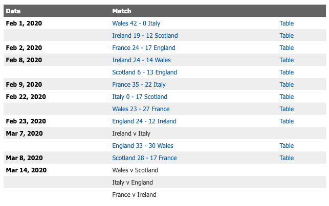 Six Nations 2020 Fixtures And Results When Are The Games Dates Times And Odds The Independent The Independent