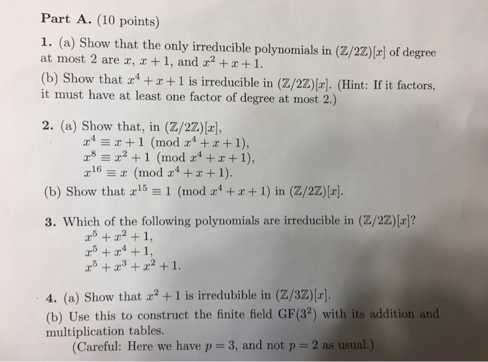 Solved Show That The Only Irreducible Polynomials In Zop Chegg Com