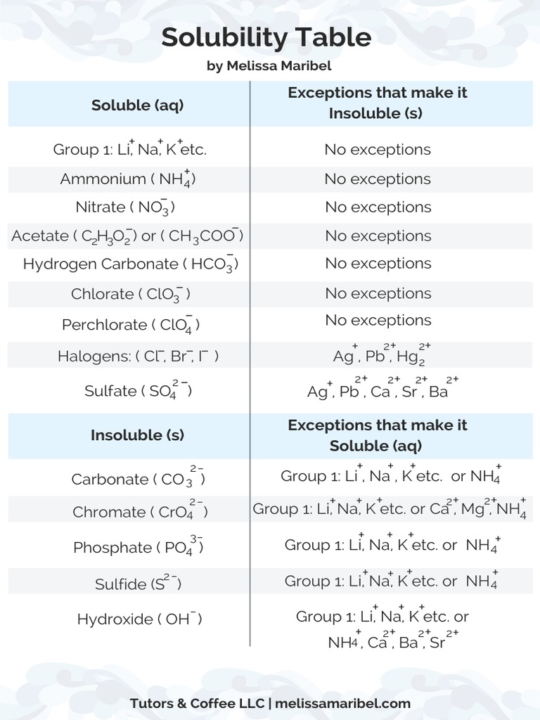 Solubility Rules And How To Use A Solubility Table By Melissa Maribel
